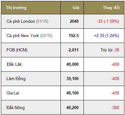 Posted by Tin tức nông nghiệp on 12:20 with No comments Giá cà phê ngày 05/11/2014 Giá cà phê Robusta (sàn Liffe - London, Anh) Giá cà phê Arabica (Sàn ICE - New York, Mỹ) Giá cà phê Arabica Braxin (Sàn BMF - SãoPaulo, Braxin) Nguồn dữ liệu: giacaphe.com Gửi email bài đăng nàyBlogThis!Chia sẻ lên XChia sẻ lên Facebook