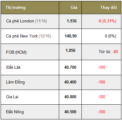 - Giá cà phê trong nước chỉ mang tính chất tham khảo.